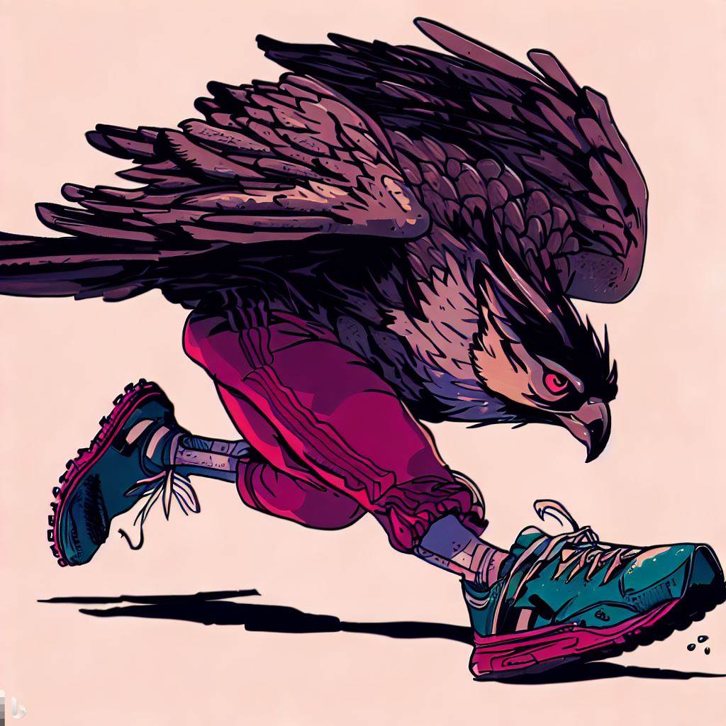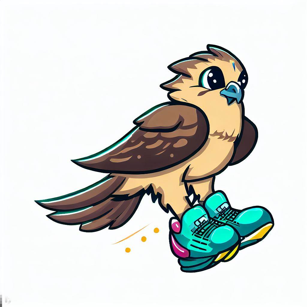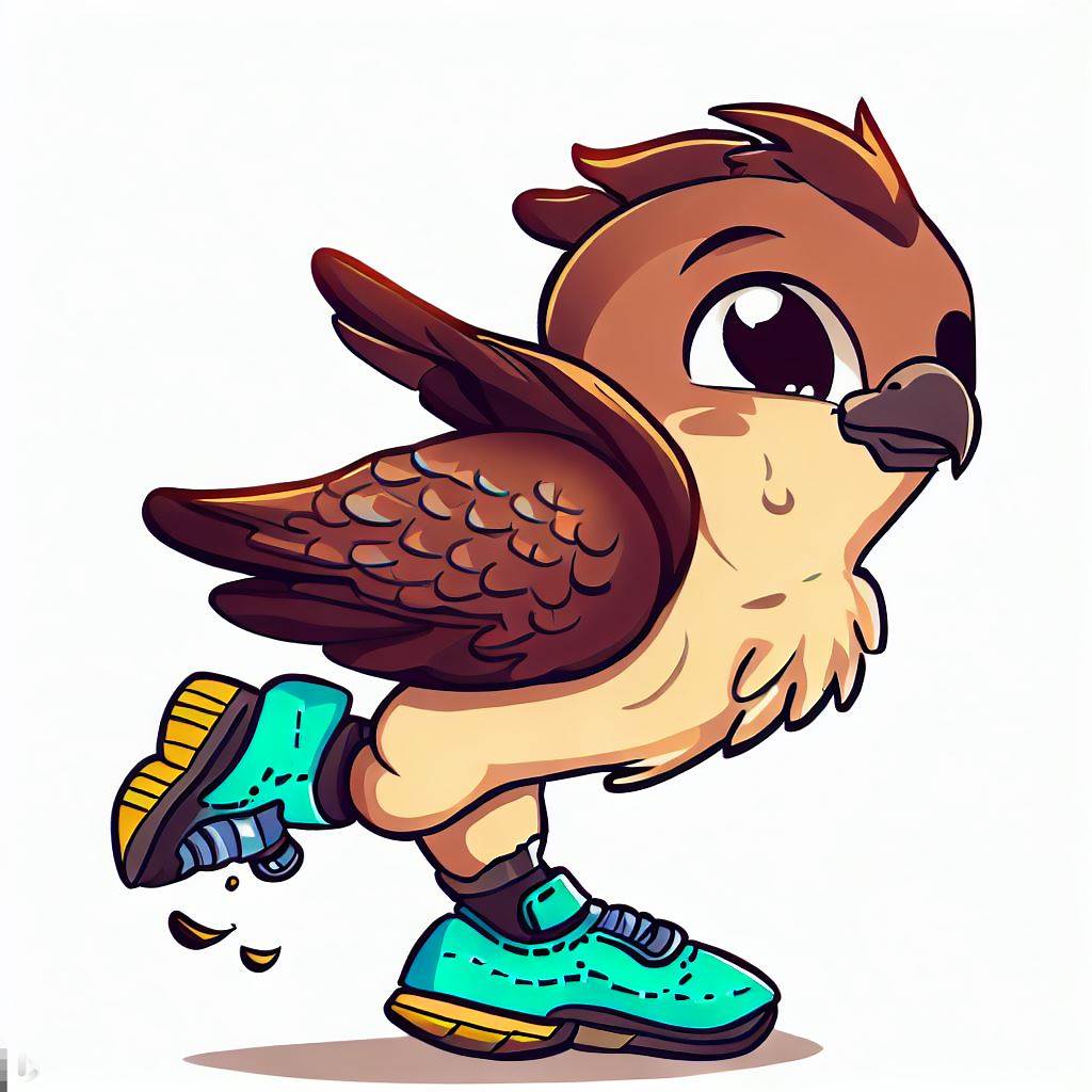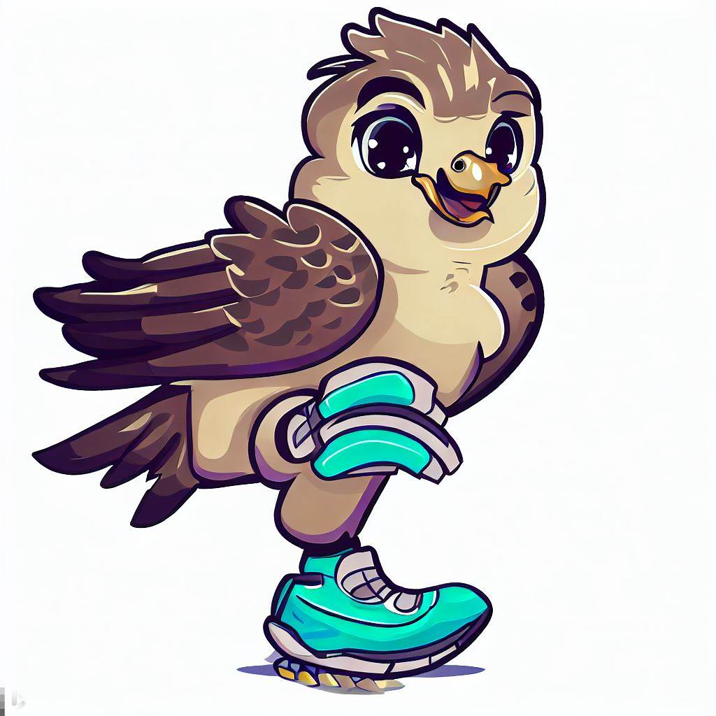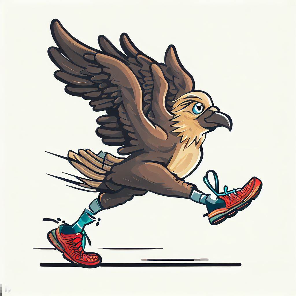 Skulle det var sødt, cute? Klart! Det skulle absolut også være noget med en fugl, ligesom Twitters logo (historien om Twitters logo) og så sko til at løbe i vel. Skulle det være minimalistisk, flat design, 2D eller 3D, old school eller ‘new school’? Jeg havde også i tankerne hvordan sportsklubber i USA ofte har en bestemt stil de designer logoer i til deres sportsklubbers, som jeg helt klart godt kunne lide. Så blev jeg, ligesom mange andre, komplet indfanget af generativ AI til billeder. Jeg begyndte at lege i forskellige motorer, løb tør for kredits og fandt nogle nye at lege med. Der var også inspirationsture gennem billedsøgemaskiner, Pinterest og andre steder. Noget materiale gemte jeg, og noget gjorde jeg ikke. Fuglemæssigt har jeg været gennem falke, ørne, svaner og ugler primært, men også roadrunners 🙂