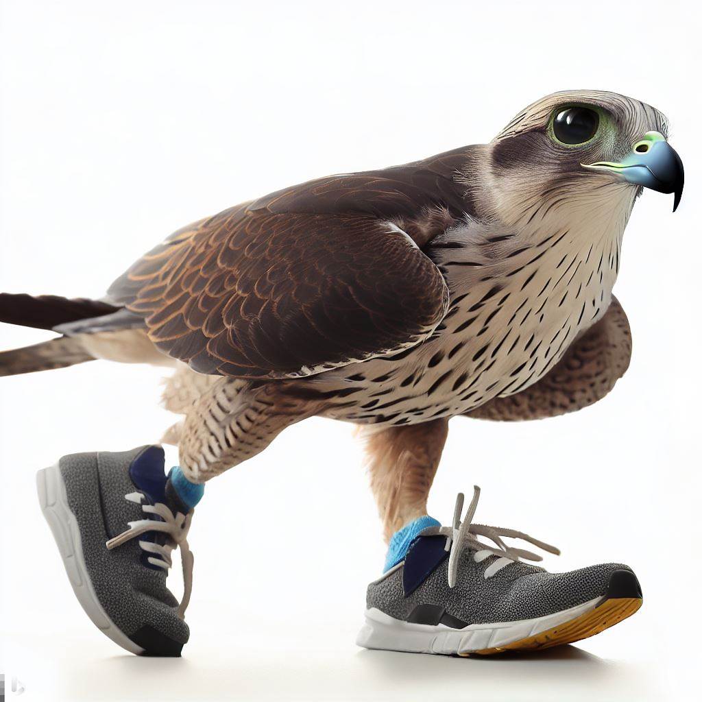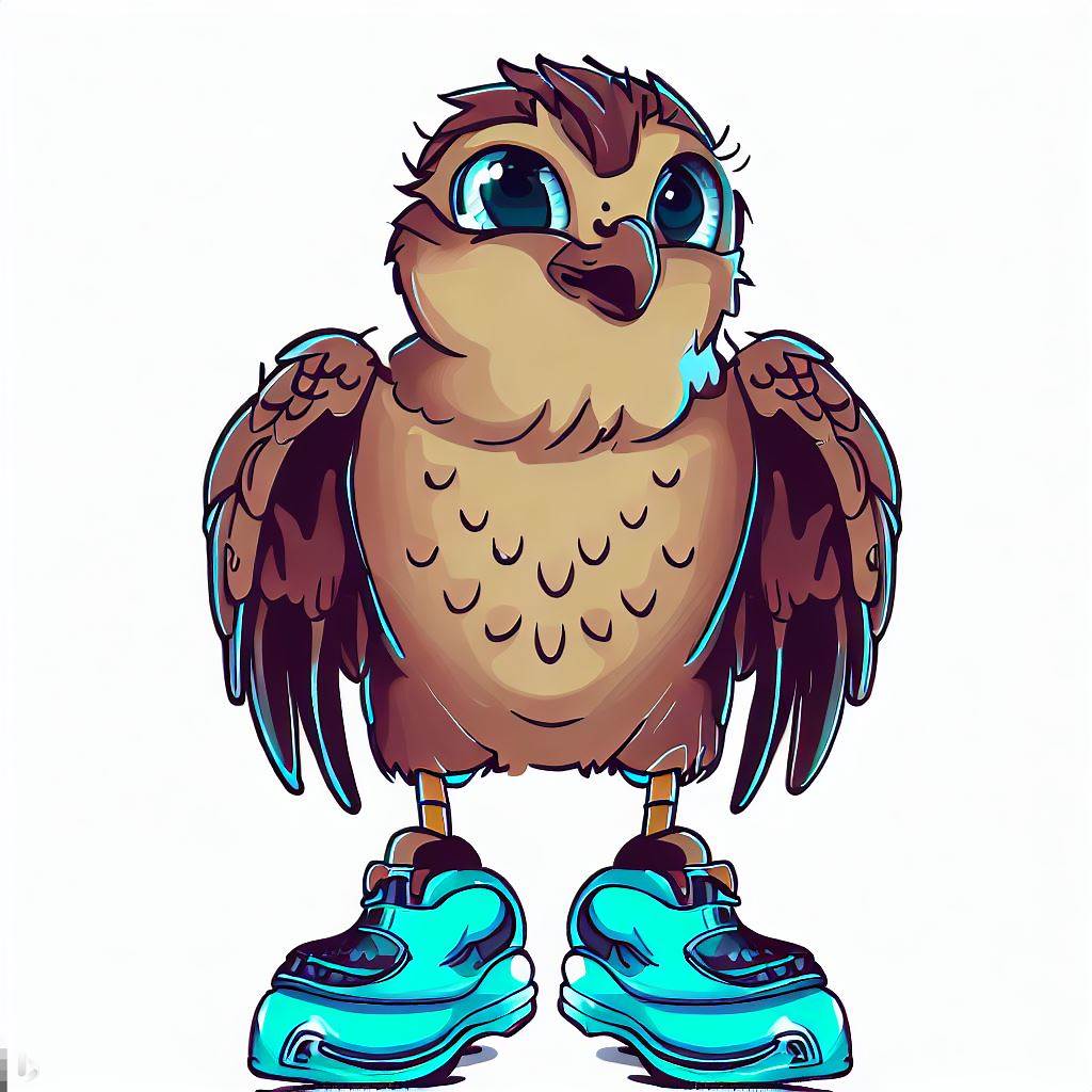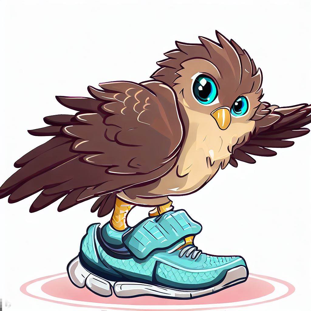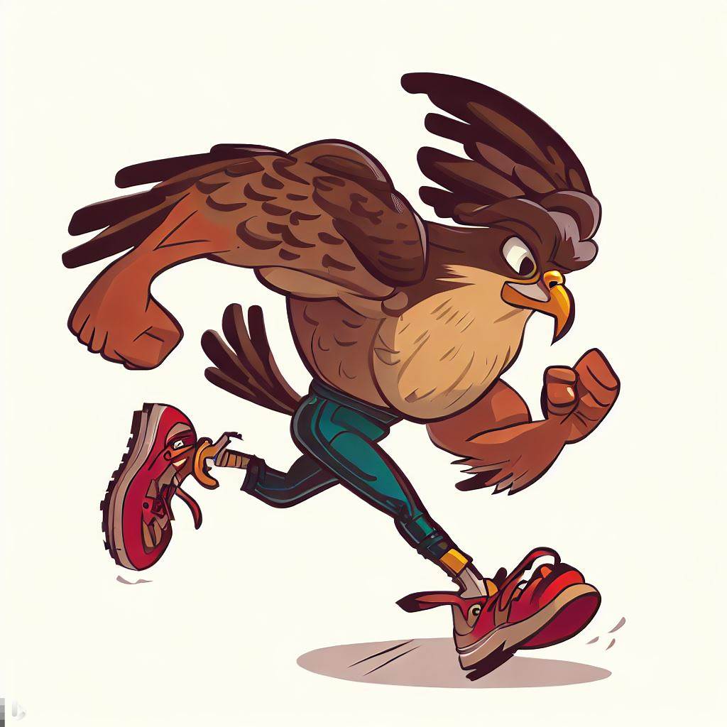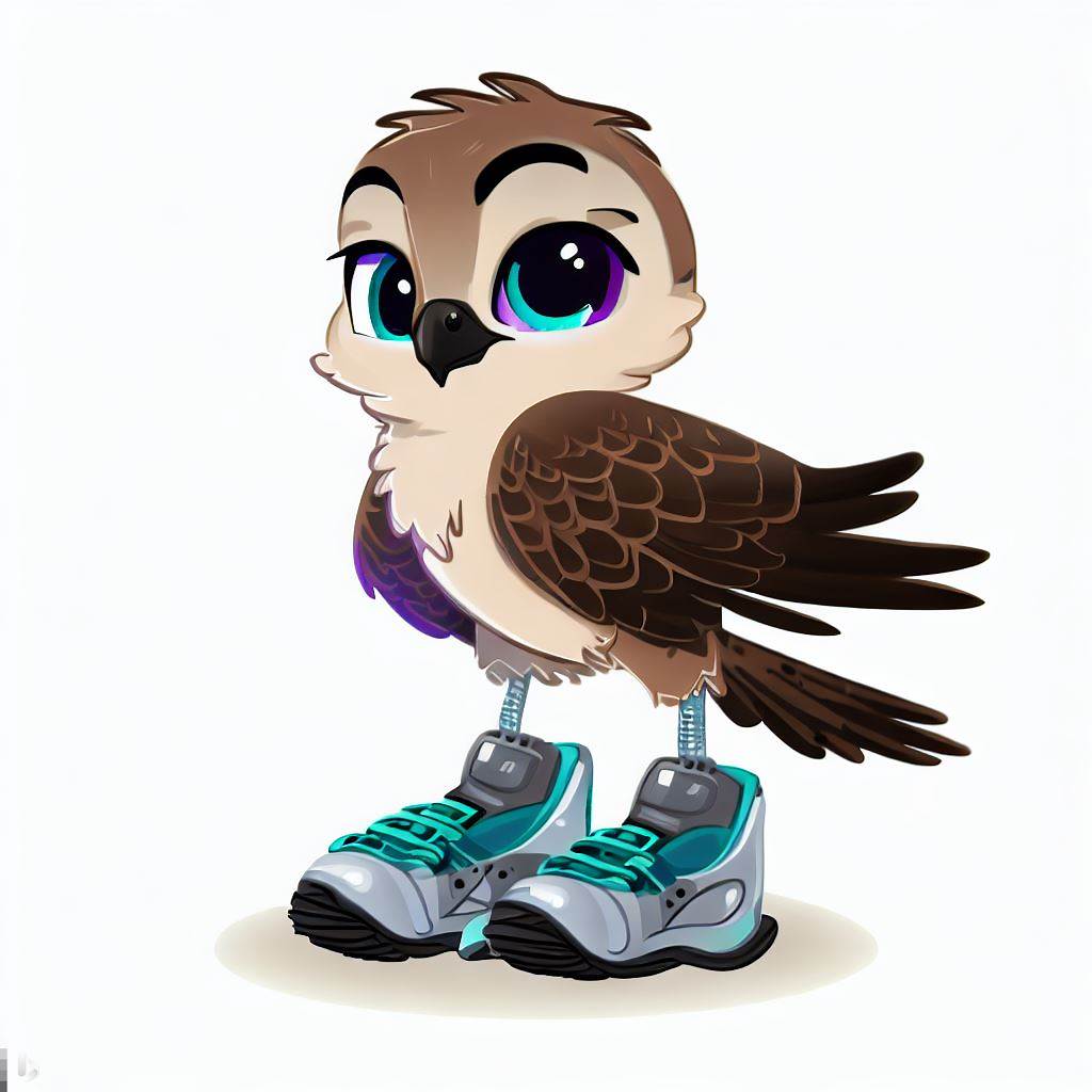Skulle det var sødt, cute? Klart! Det skulle absolut også være noget med en fugl, ligesom Twitters logo (historien om Twitters logo) og så sko til at løbe i vel. Skulle det være minimalistisk, flat design, 2D eller 3D, old school eller ‘new school’? Jeg havde også i tankerne hvordan sportsklubber i USA ofte har en bestemt stil de designer logoer i til deres sportsklubbers, som jeg helt klart godt kunne lide. Så blev jeg, ligesom mange andre, komplet indfanget af generativ AI til billeder. Jeg begyndte at lege i forskellige motorer, løb tør for kredits og fandt nogle nye at lege med. Der var også inspirationsture gennem billedsøgemaskiner, Pinterest og andre steder. Noget materiale gemte jeg, og noget gjorde jeg ikke. Fuglemæssigt har jeg været gennem falke, ørne, svaner og ugler primært, men også roadrunners 🙂