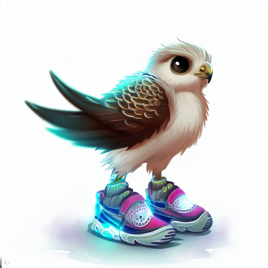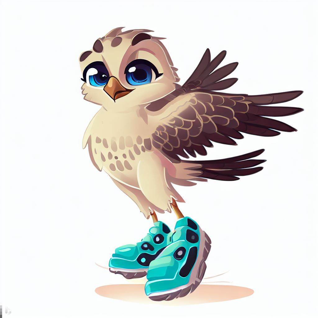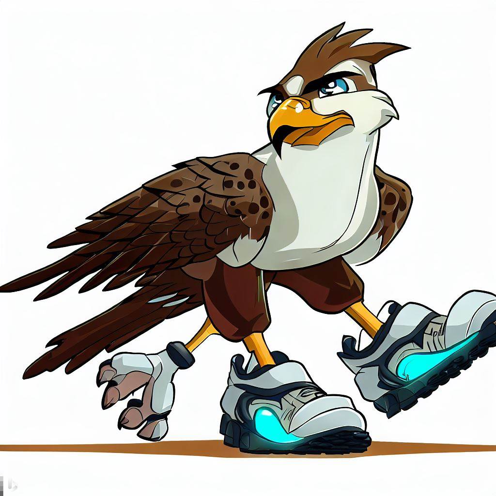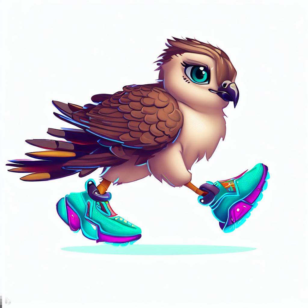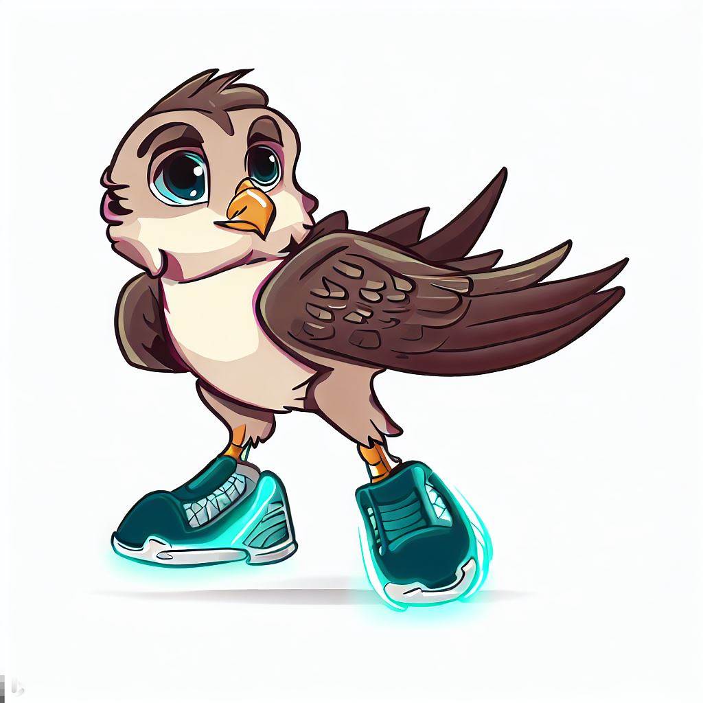 Skulle det var sødt, cute? Klart! Det skulle absolut også være noget med en fugl, ligesom Twitters logo (historien om Twitters logo) og så sko til at løbe i vel. Skulle det være minimalistisk, flat design, 2D eller 3D, old school eller ‘new school’? Jeg havde også i tankerne hvordan sportsklubber i USA ofte har en bestemt stil de designer logoer i til deres sportsklubbers, som jeg helt klart godt kunne lide. Så blev jeg, ligesom mange andre, komplet indfanget af generativ AI til billeder. Jeg begyndte at lege i forskellige motorer, løb tør for kredits og fandt nogle nye at lege med. Der var også inspirationsture gennem billedsøgemaskiner, Pinterest og andre steder. Noget materiale gemte jeg, og noget gjorde jeg ikke. Fuglemæssigt har jeg været gennem falke, ørne, svaner og ugler primært, men også roadrunners 🙂