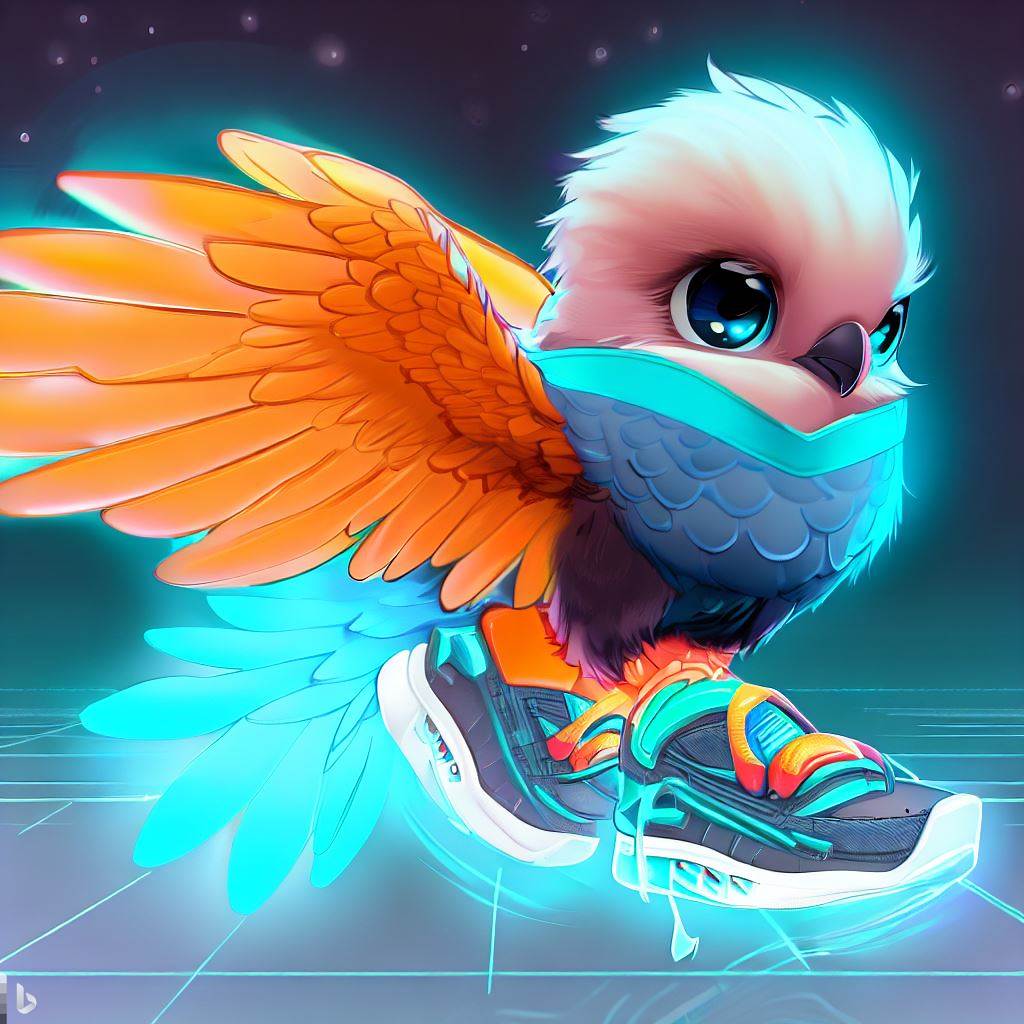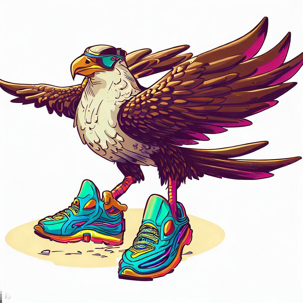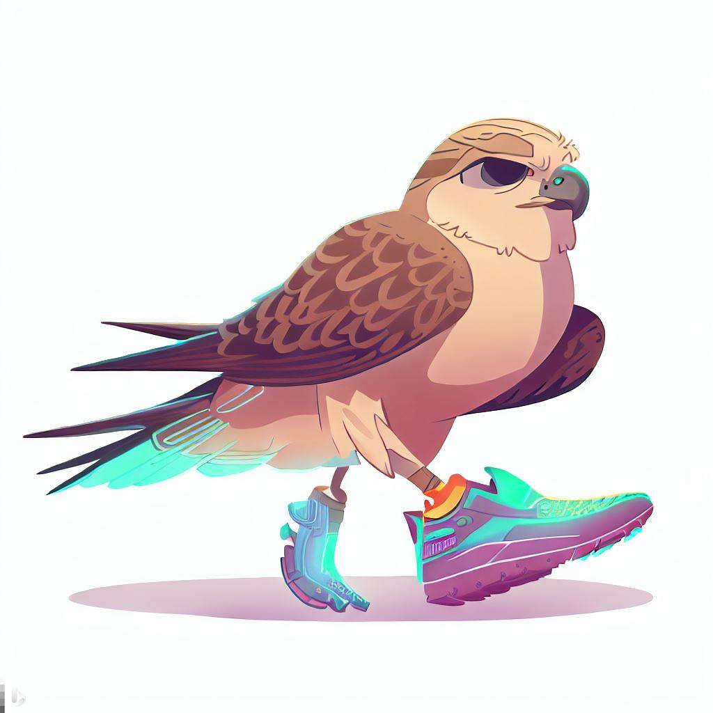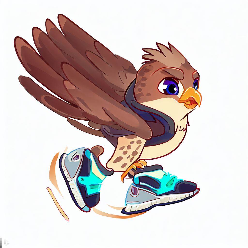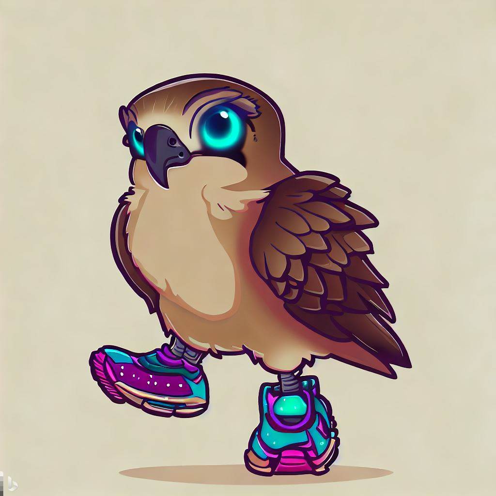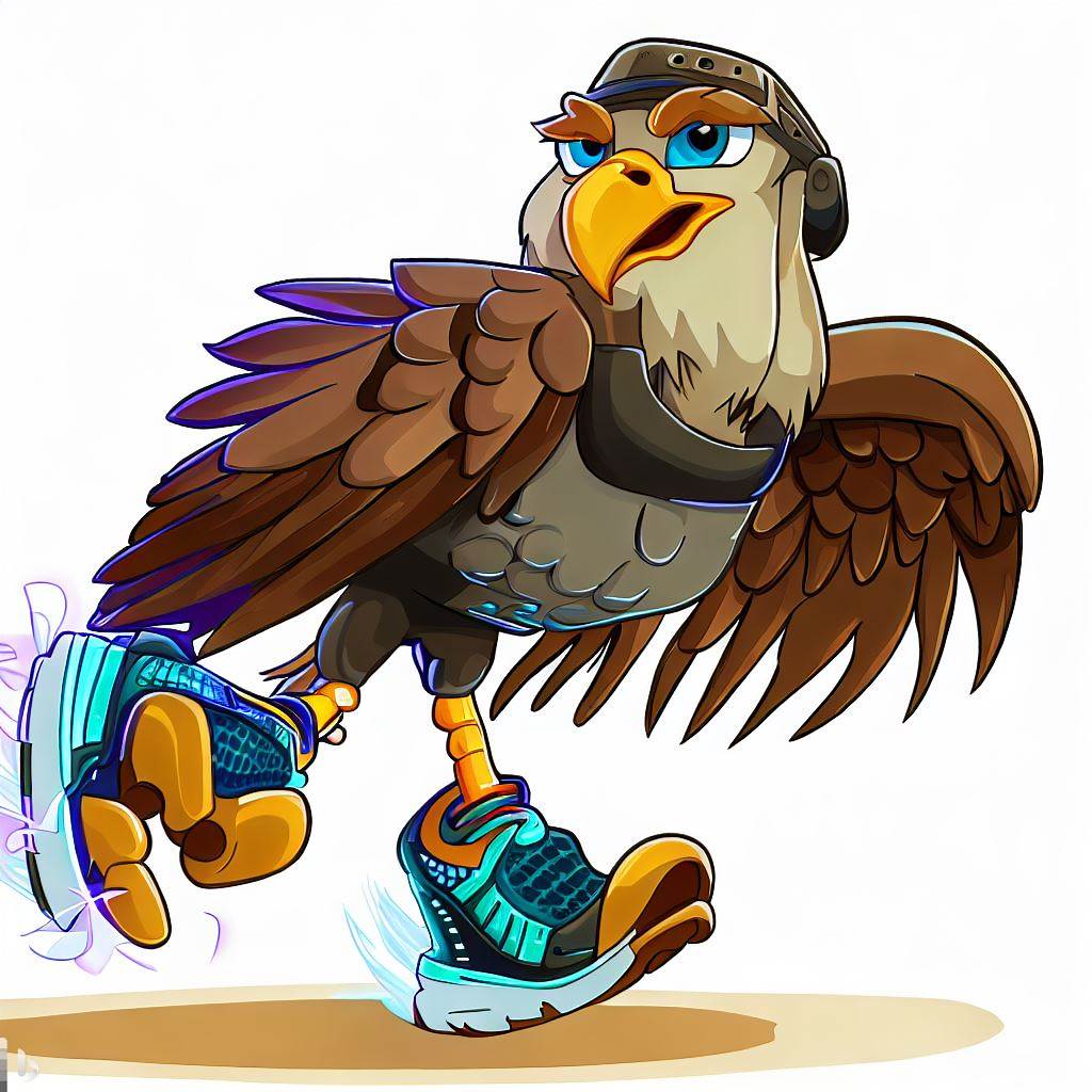 Skulle det var sødt, cute? Klart! Det skulle absolut også være noget med en fugl, ligesom Twitters logo (historien om Twitters logo) og så sko til at løbe i vel. Skulle det være minimalistisk, flat design, 2D eller 3D, old school eller ‘new school’? Jeg havde også i tankerne hvordan sportsklubber i USA ofte har en bestemt stil de designer logoer i til deres sportsklubbers, som jeg helt klart godt kunne lide. Så blev jeg, ligesom mange andre, komplet indfanget af generativ AI til billeder. Jeg begyndte at lege i forskellige motorer, løb tør for kredits og fandt nogle nye at lege med. Der var også inspirationsture gennem billedsøgemaskiner, Pinterest og andre steder. Noget materiale gemte jeg, og noget gjorde jeg ikke. Fuglemæssigt har jeg været gennem falke, ørne, svaner og ugler primært, men også roadrunners 🙂