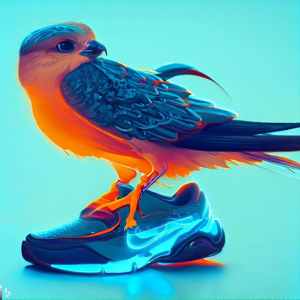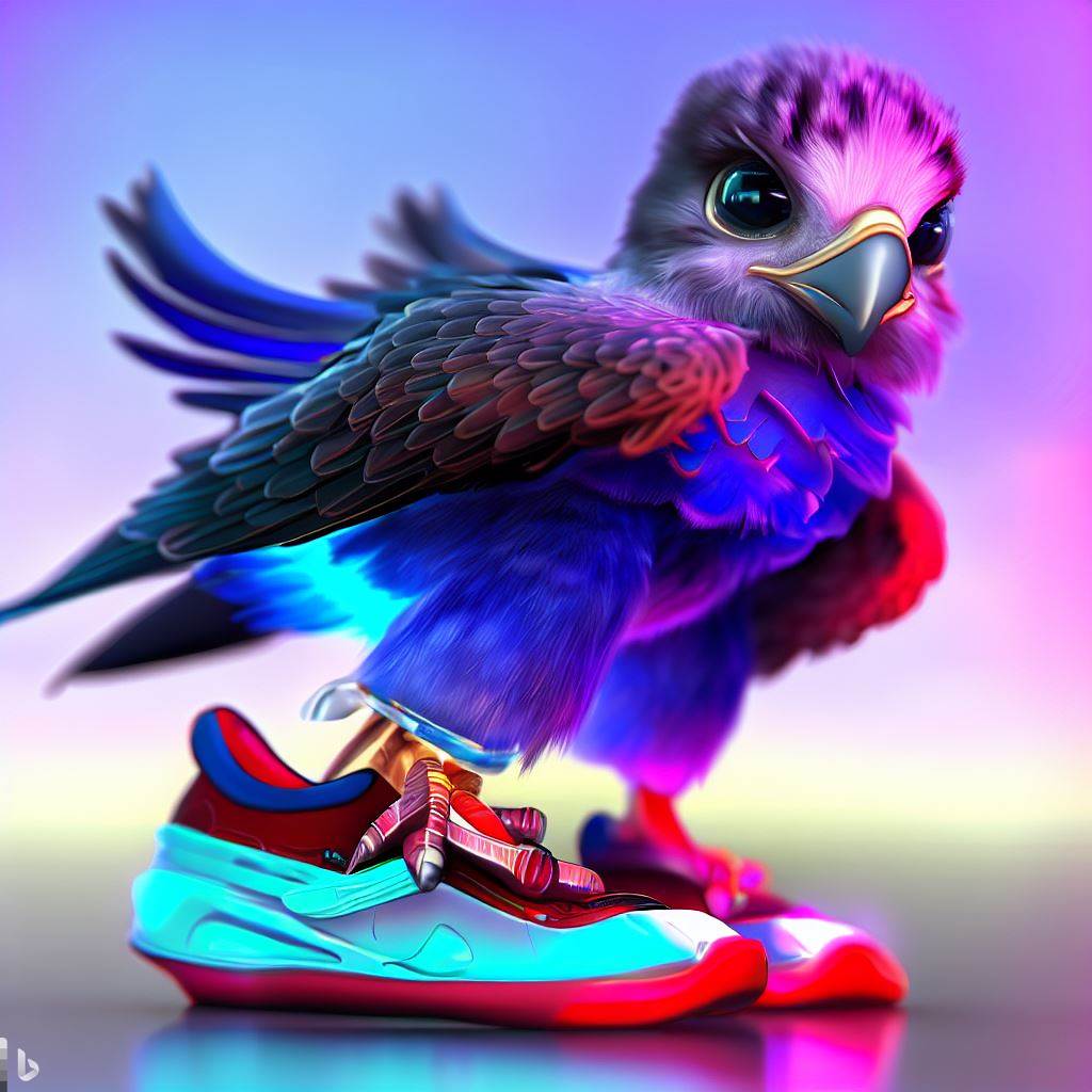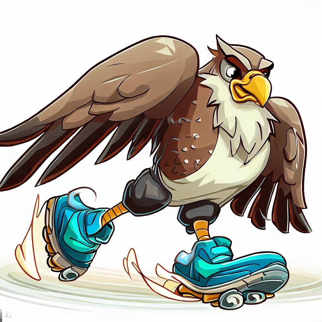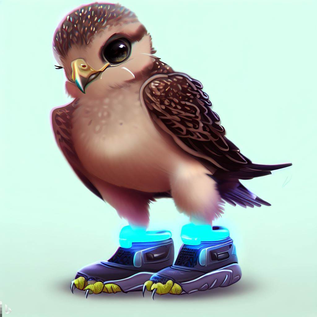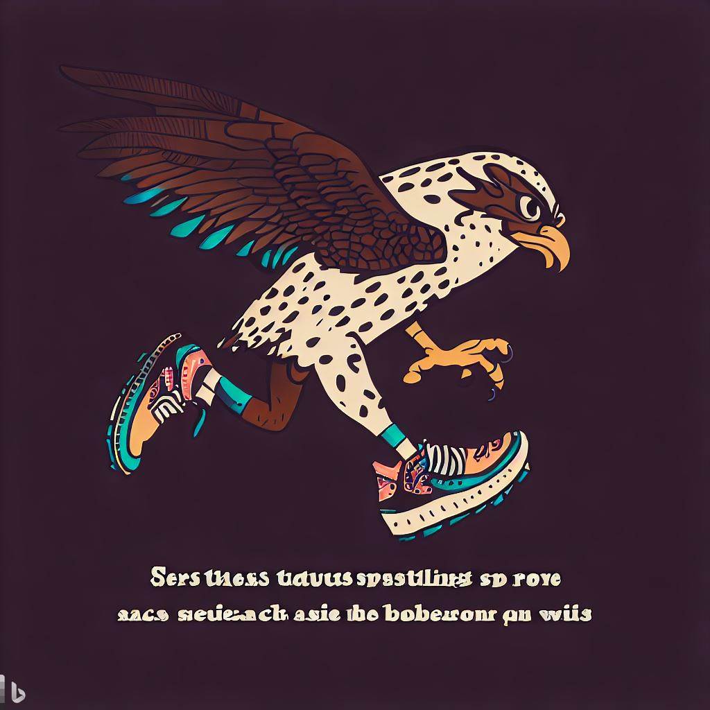 Skulle det var sødt, cute? Klart! Det skulle absolut også være noget med en fugl, ligesom Twitters logo (historien om Twitters logo) og så sko til at løbe i vel. Skulle det være minimalistisk, flat design, 2D eller 3D, old school eller ‘new school’? Jeg havde også i tankerne hvordan sportsklubber i USA ofte har en bestemt stil de designer logoer i til deres sportsklubbers, som jeg helt klart godt kunne lide. Så blev jeg, ligesom mange andre, komplet indfanget af generativ AI til billeder. Jeg begyndte at lege i forskellige motorer, løb tør for kredits og fandt nogle nye at lege med. Der var også inspirationsture gennem billedsøgemaskiner, Pinterest og andre steder. Noget materiale gemte jeg, og noget gjorde jeg ikke. Fuglemæssigt har jeg været gennem falke, ørne, svaner og ugler primært, men også roadrunners 🙂