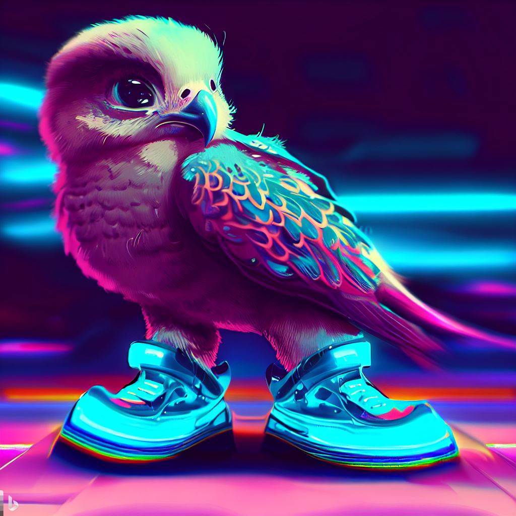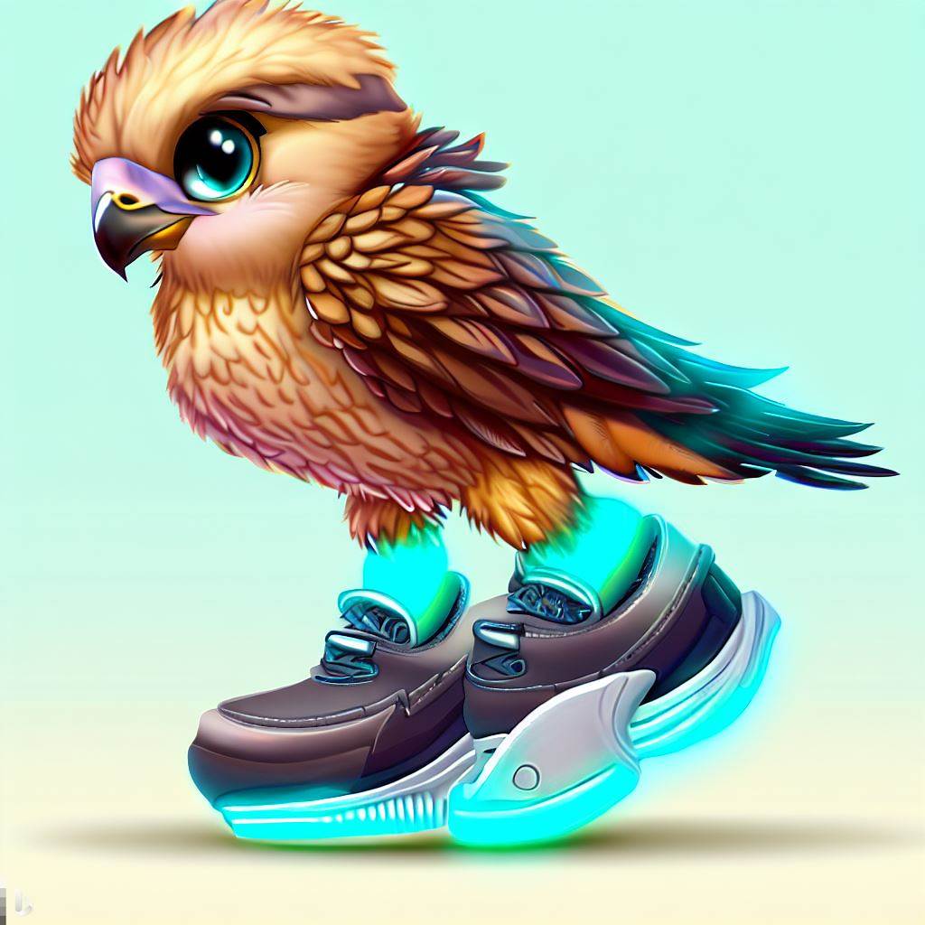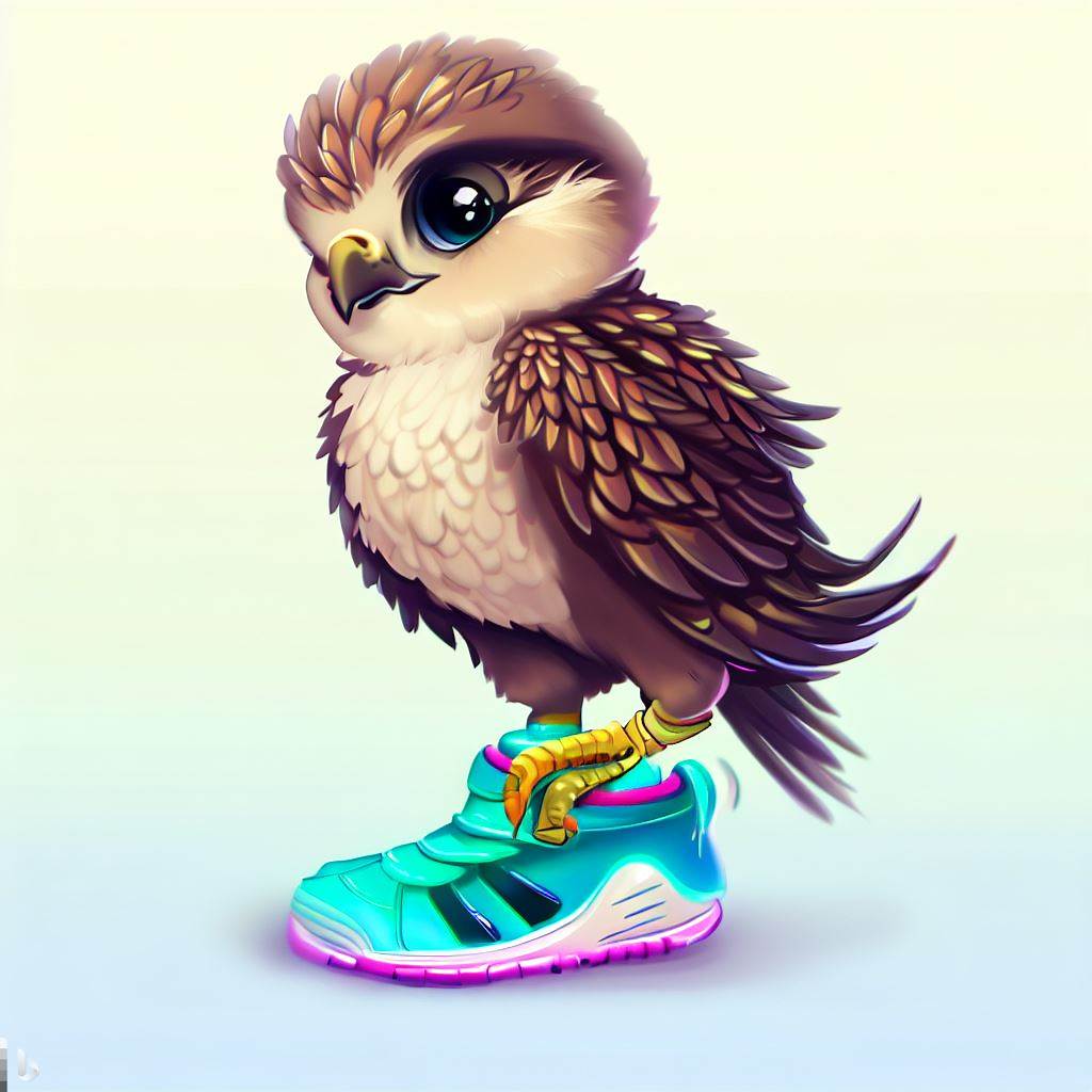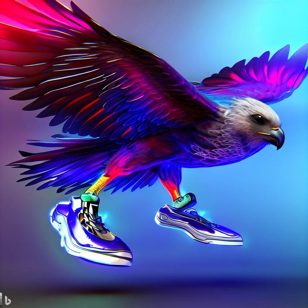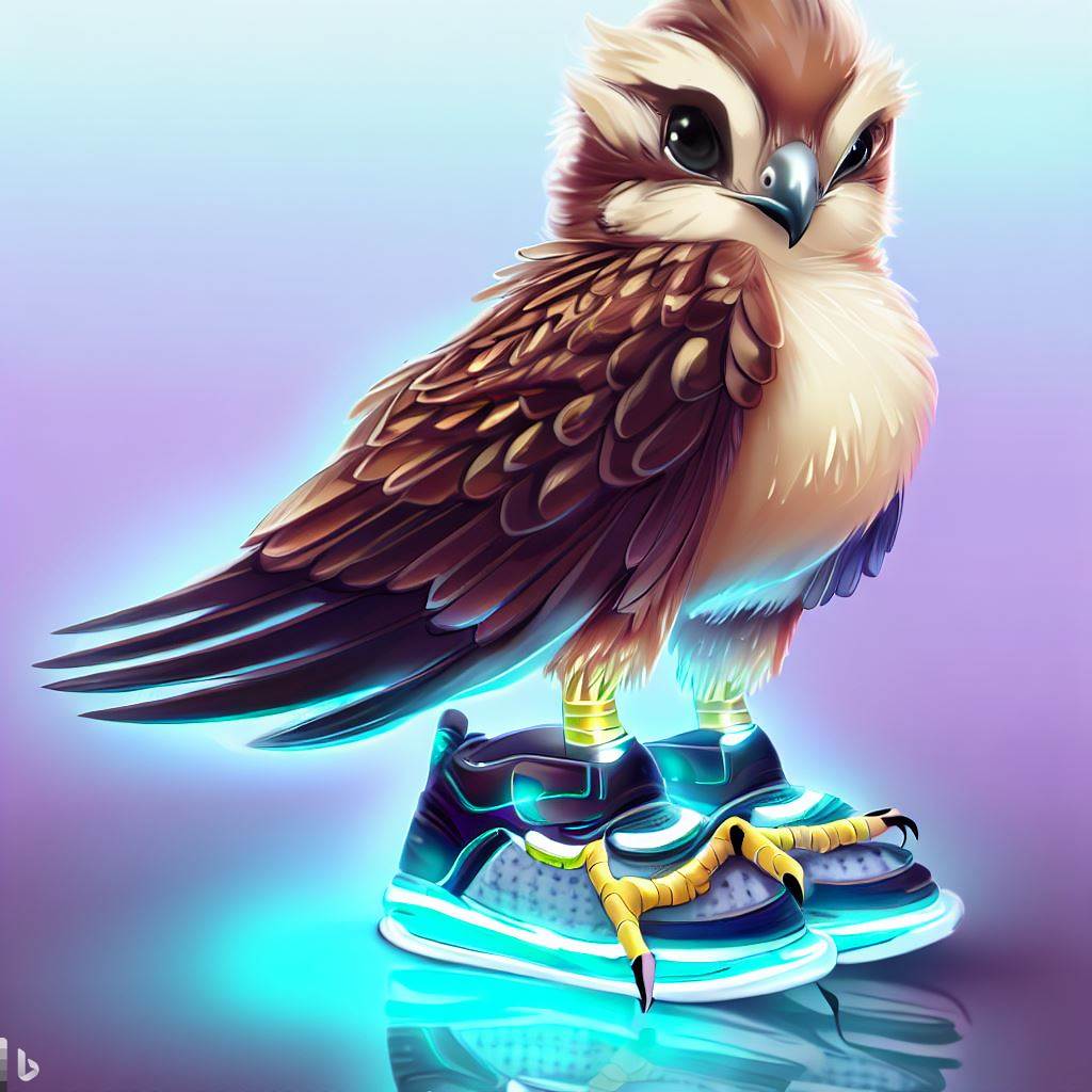 Skulle det var sødt, cute? Klart! Det skulle absolut også være noget med en fugl, ligesom Twitters logo (historien om Twitters logo) og så sko til at løbe i vel. Skulle det være minimalistisk, flat design, 2D eller 3D, old school eller ‘new school’? Jeg havde også i tankerne hvordan sportsklubber i USA ofte har en bestemt stil de designer logoer i til deres sportsklubbers, som jeg helt klart godt kunne lide. Så blev jeg, ligesom mange andre, komplet indfanget af generativ AI til billeder. Jeg begyndte at lege i forskellige motorer, løb tør for kredits og fandt nogle nye at lege med. Der var også inspirationsture gennem billedsøgemaskiner, Pinterest og andre steder. Noget materiale gemte jeg, og noget gjorde jeg ikke. Fuglemæssigt har jeg været gennem falke, ørne, svaner og ugler primært, men også roadrunners 🙂